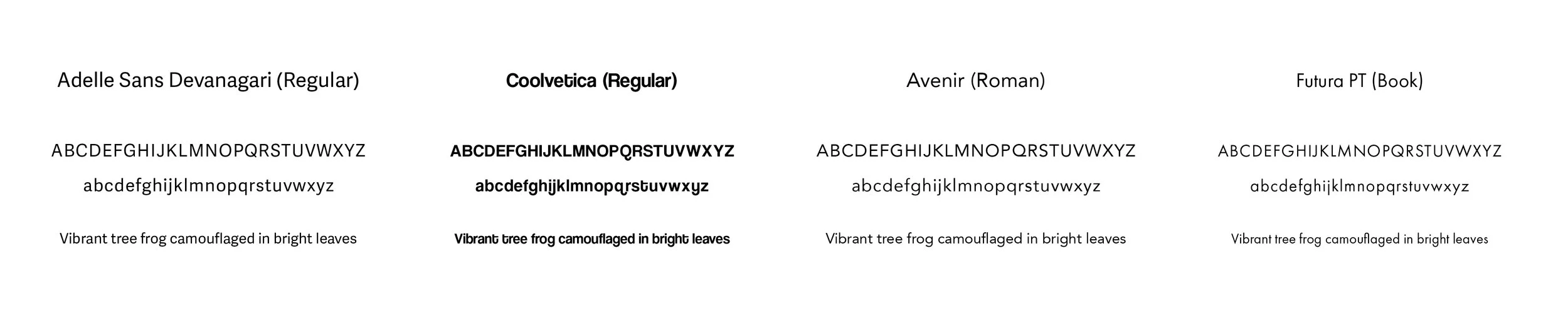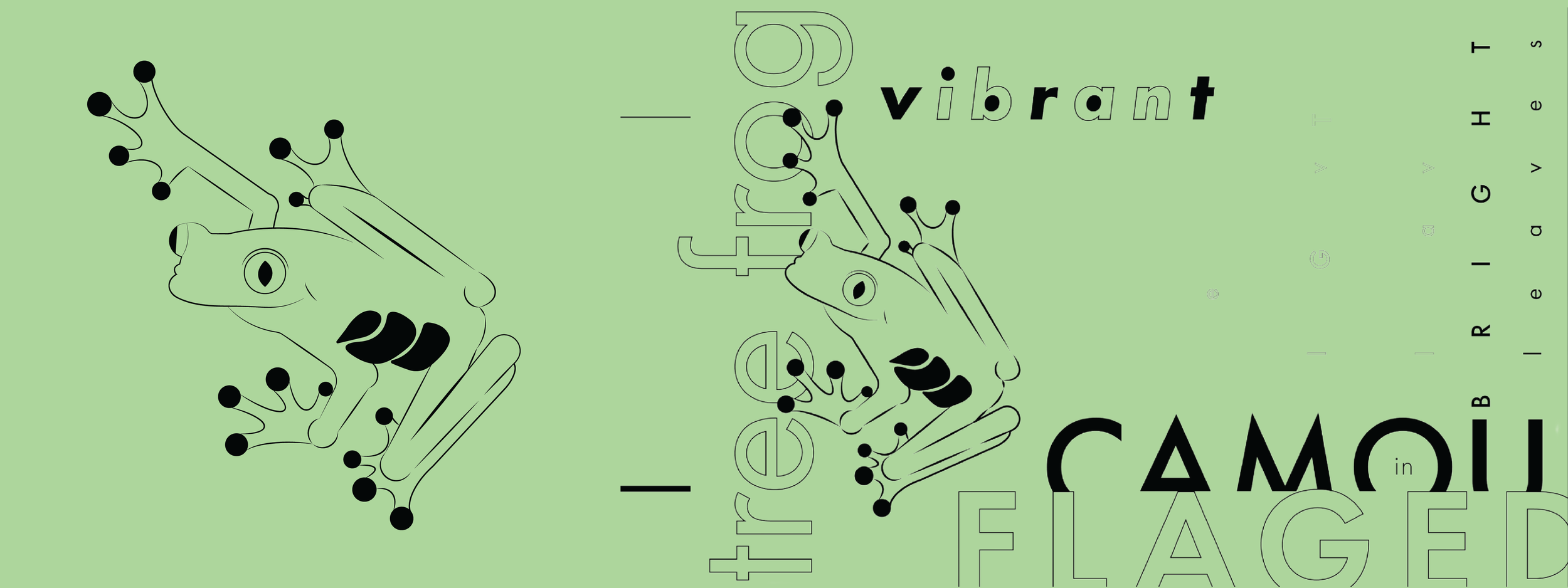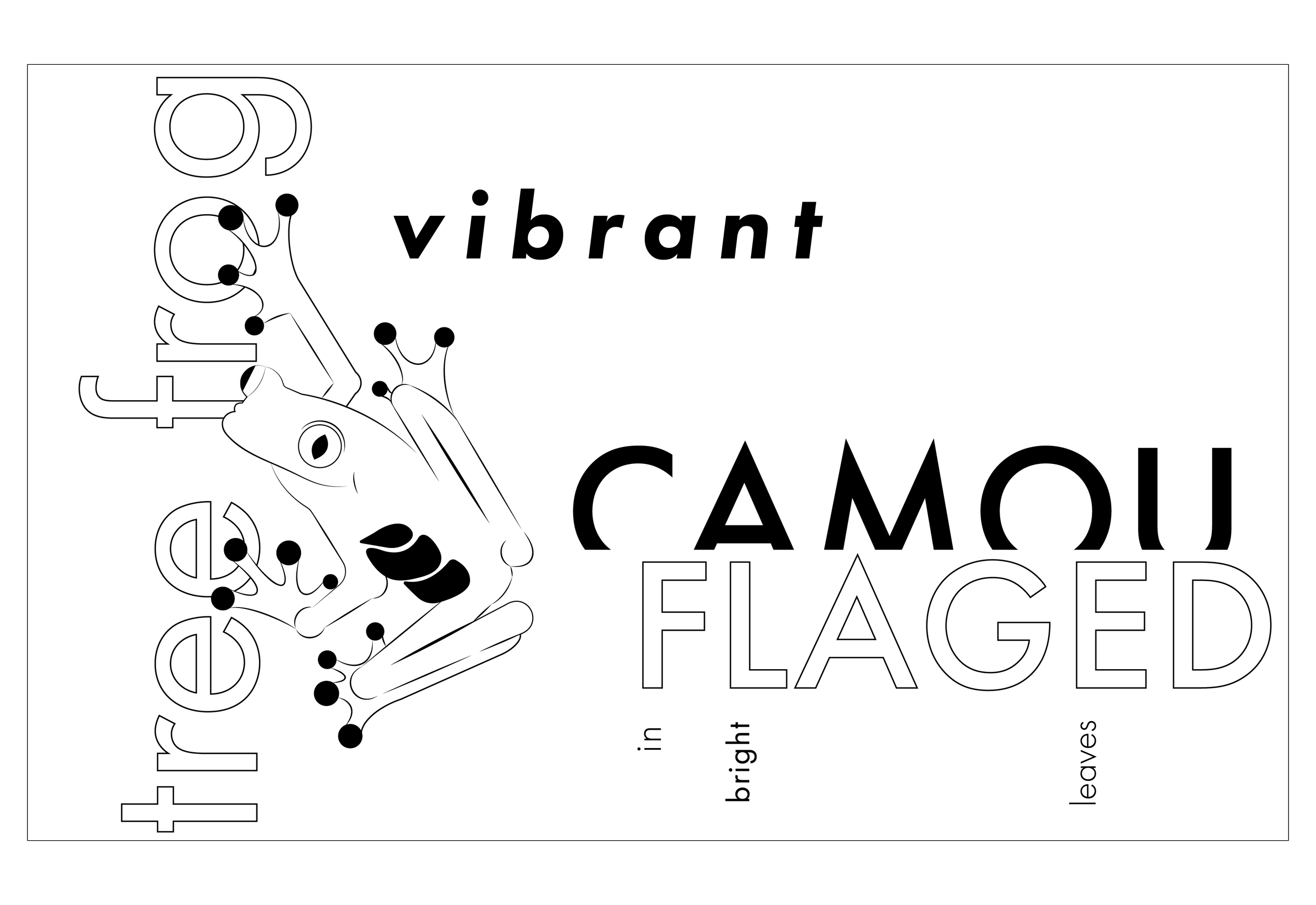 Since tree frogs are known for their ability to climb trees, the goal was to reflect this creature’s special ability. The interpretive phrase aims to put the viewer into a “typographic rainforest” where the tree frog lives and camouflages from predators.